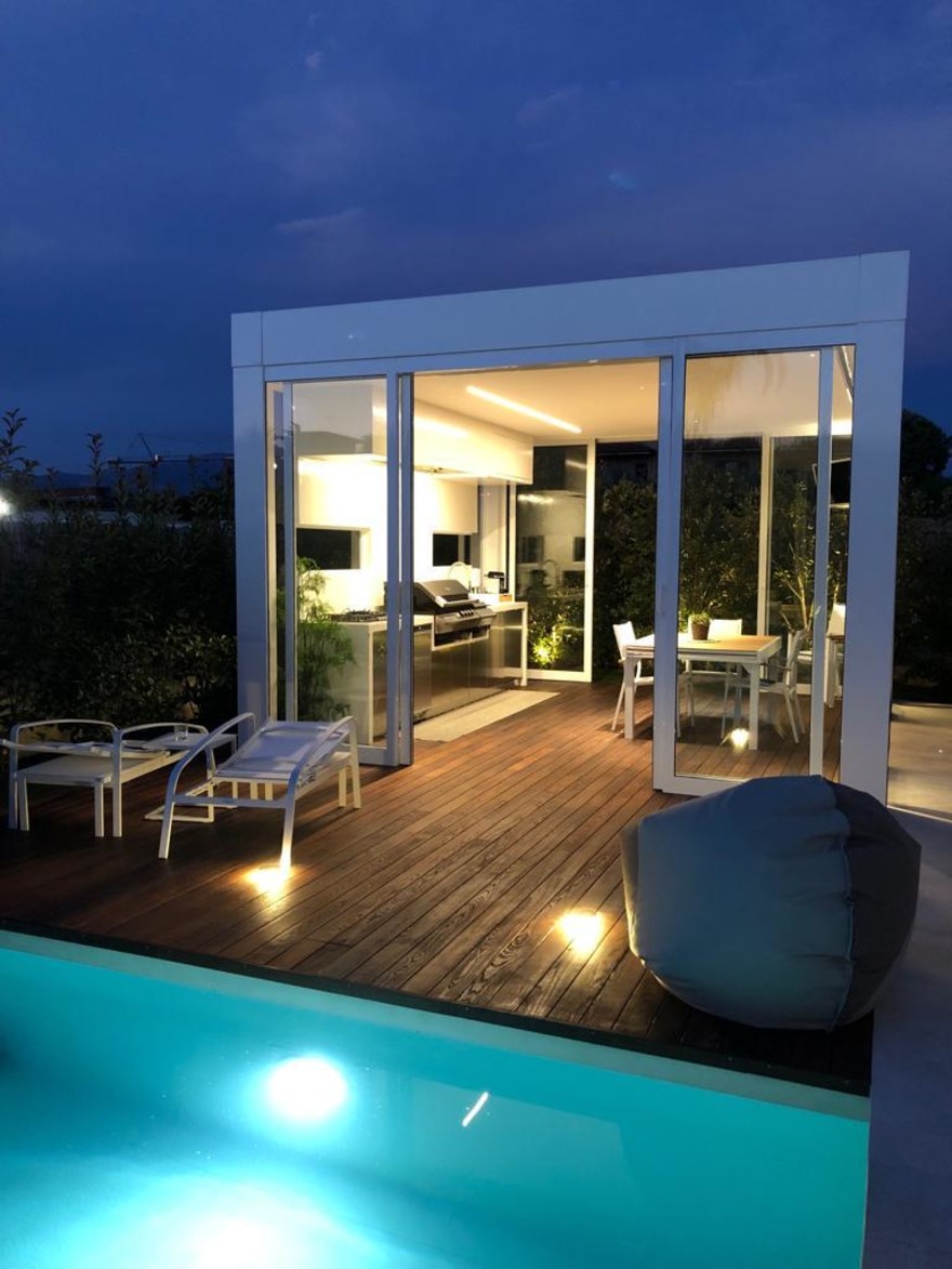 Il pavimento da esterno deve essere posato su un piano di cemento, ceramica, gres, con scarico dell'acqua.